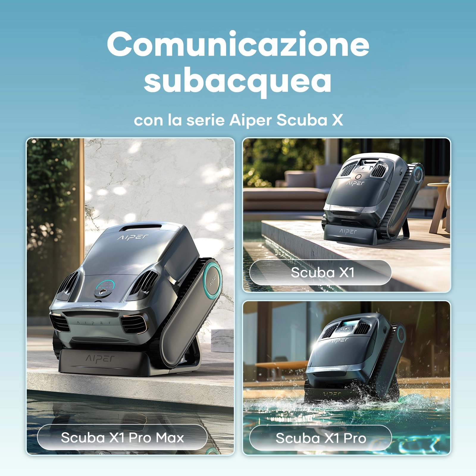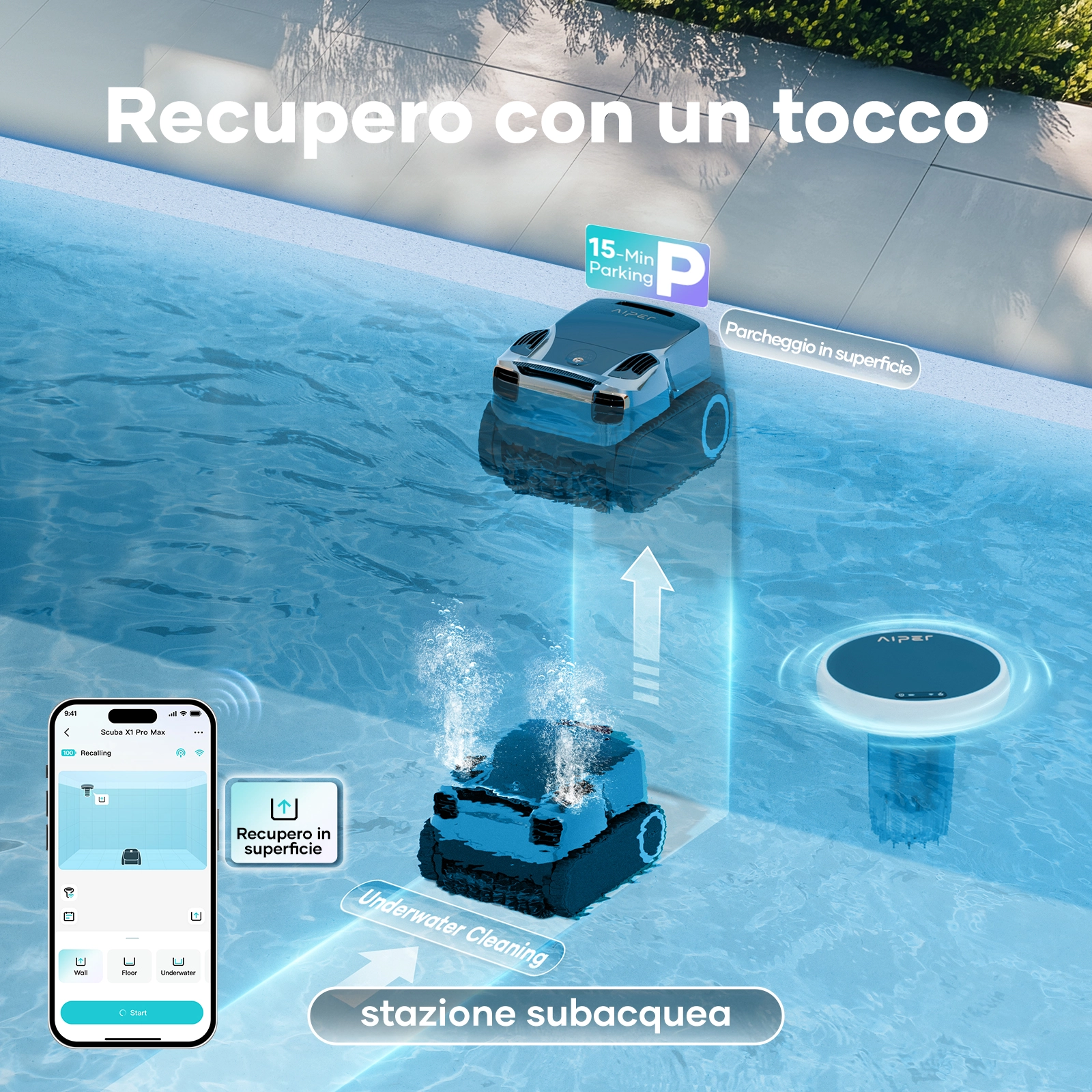 Abbina il tuo robot senza fili Aiper a Hydrocomm Pure per sbloccare e sfruttare appieno la comunicazione wireless subacquea, garantendo una connettività impeccabile sotto la superficie dell’acqua.